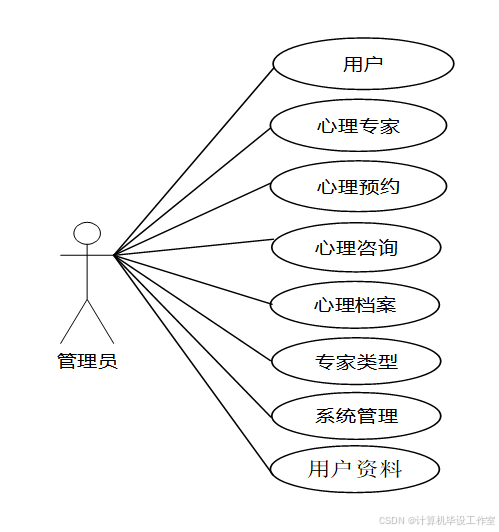 管理员是维护整个大学生心理健康管理系统中所有数据信息的。管理员角色用例如图2-8所示。