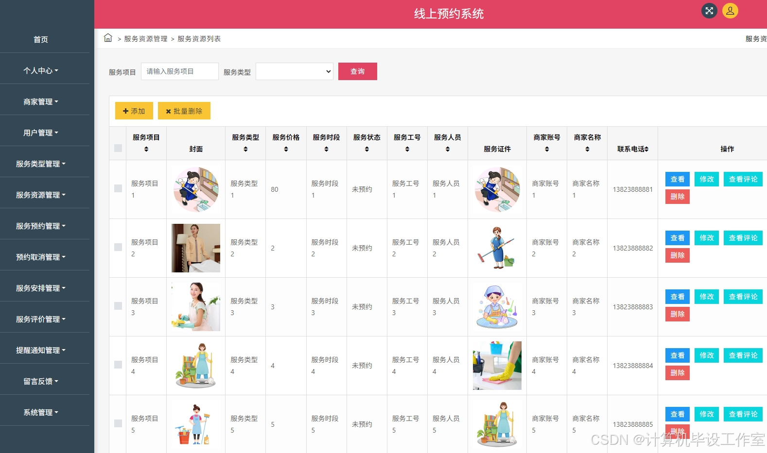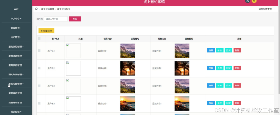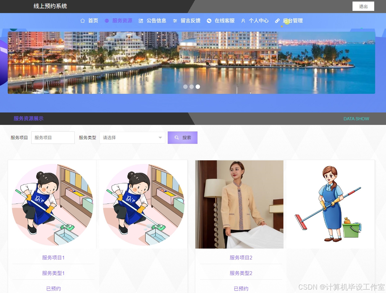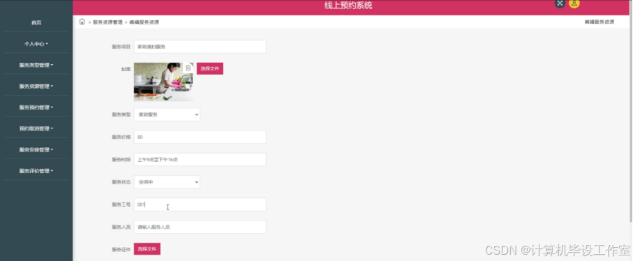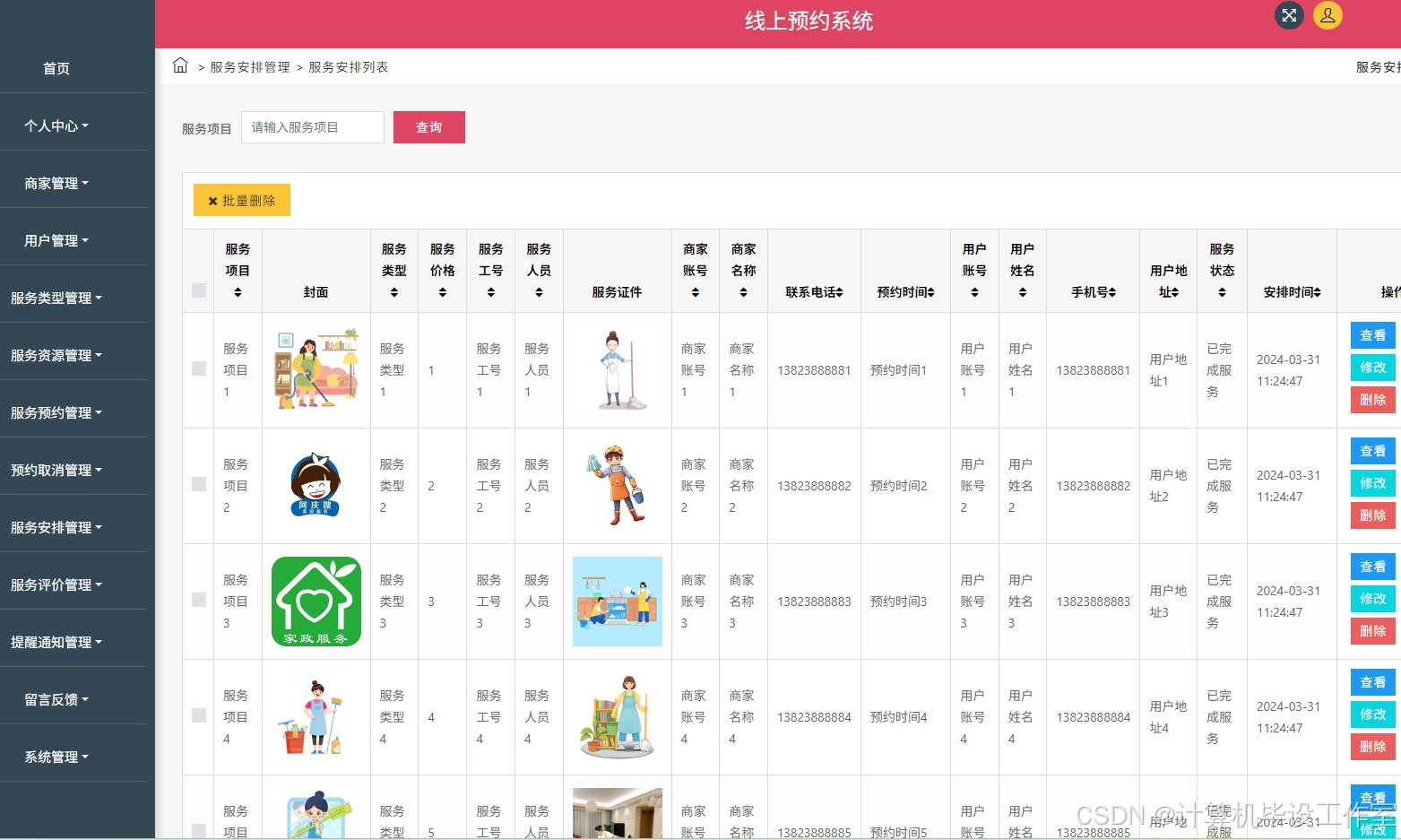 6.服务预约管理:对用户提交的服务项目预约信息进行管理。