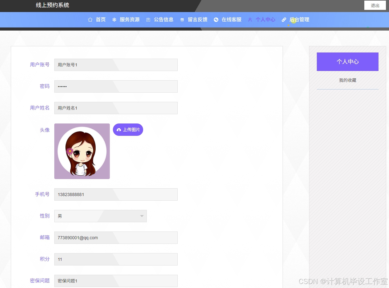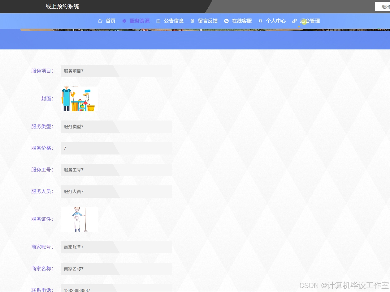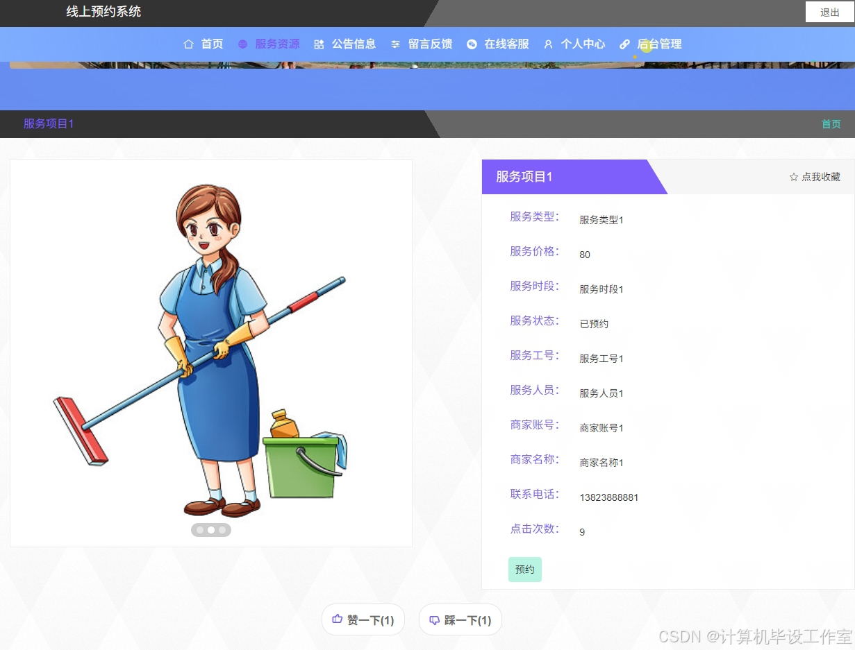 6.服务预约管理:对用户提交的服务项目预约信息进行管理。