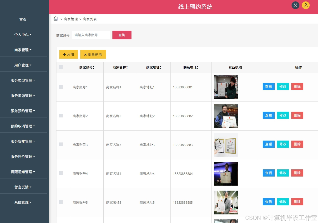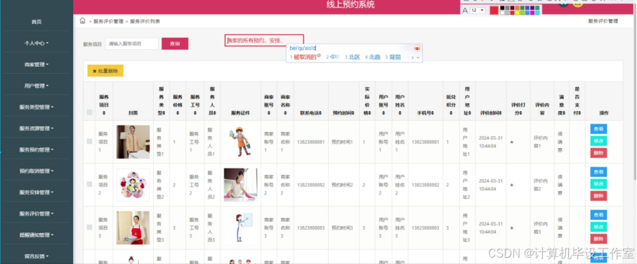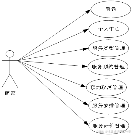 3.服务预约管理:商家对用户提交的服务预约进行处理。