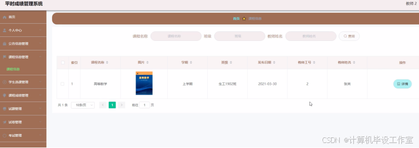 课程信息管理,教师在课程信息管理页面进行详情查看,如图5-16所示。