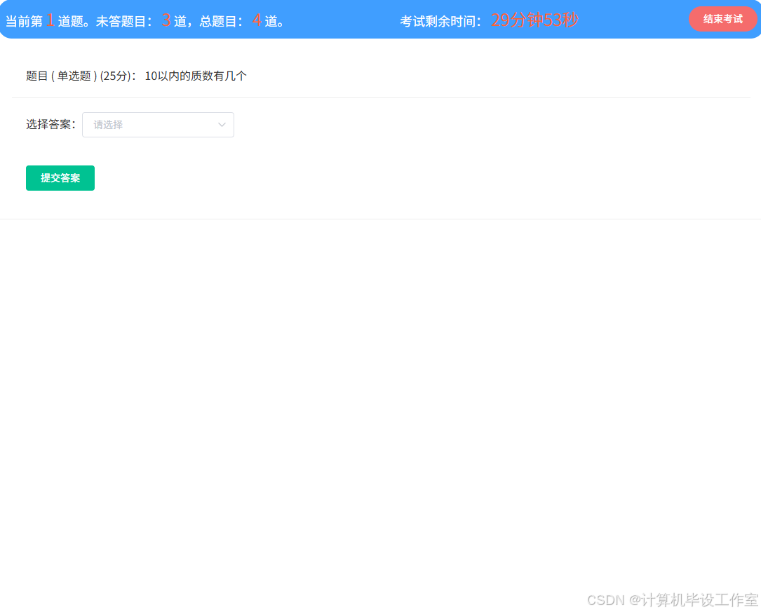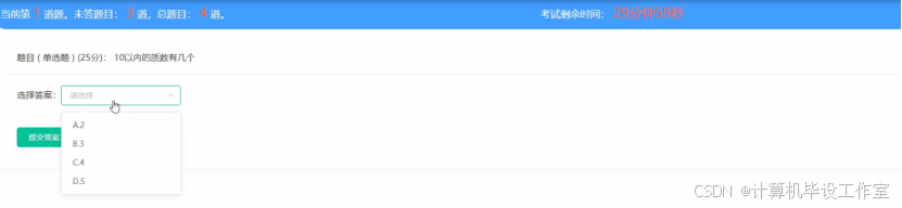 考试管理,学生在考试页面通过点击考试进入答题页面进行考试,如图5-12所示。
