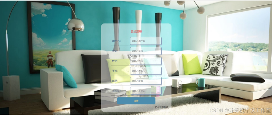 允许新会员创建个人账户,通过填写基本信息如会员名、密码等完成注册。系统会对会员输入的信息进行验证,确保其合法性和安全性。注册成功后,会员可以登录系统,使用相关功能。会员注册界面展示如图5-1所示。