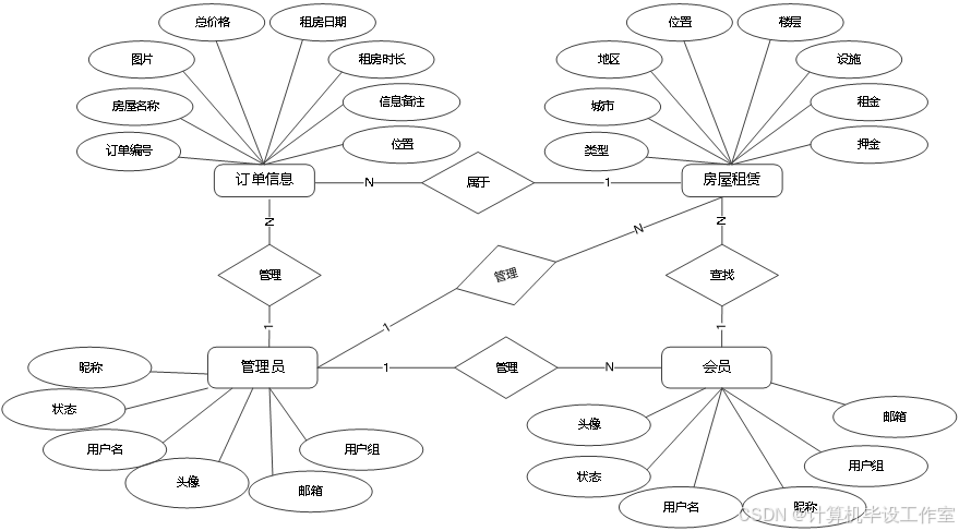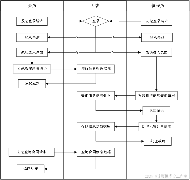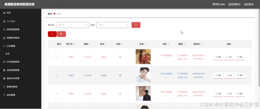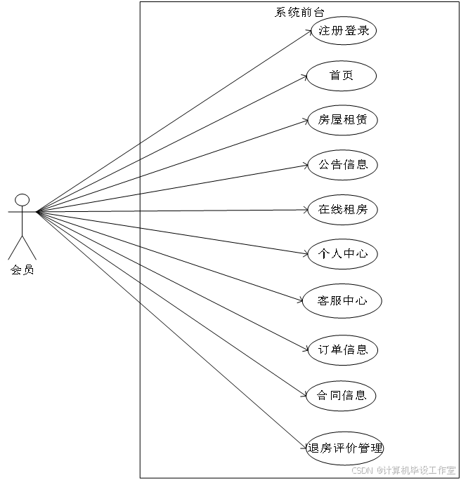房屋租赁推荐管理系统设计分为两个主要用户角色:会员和管理员。