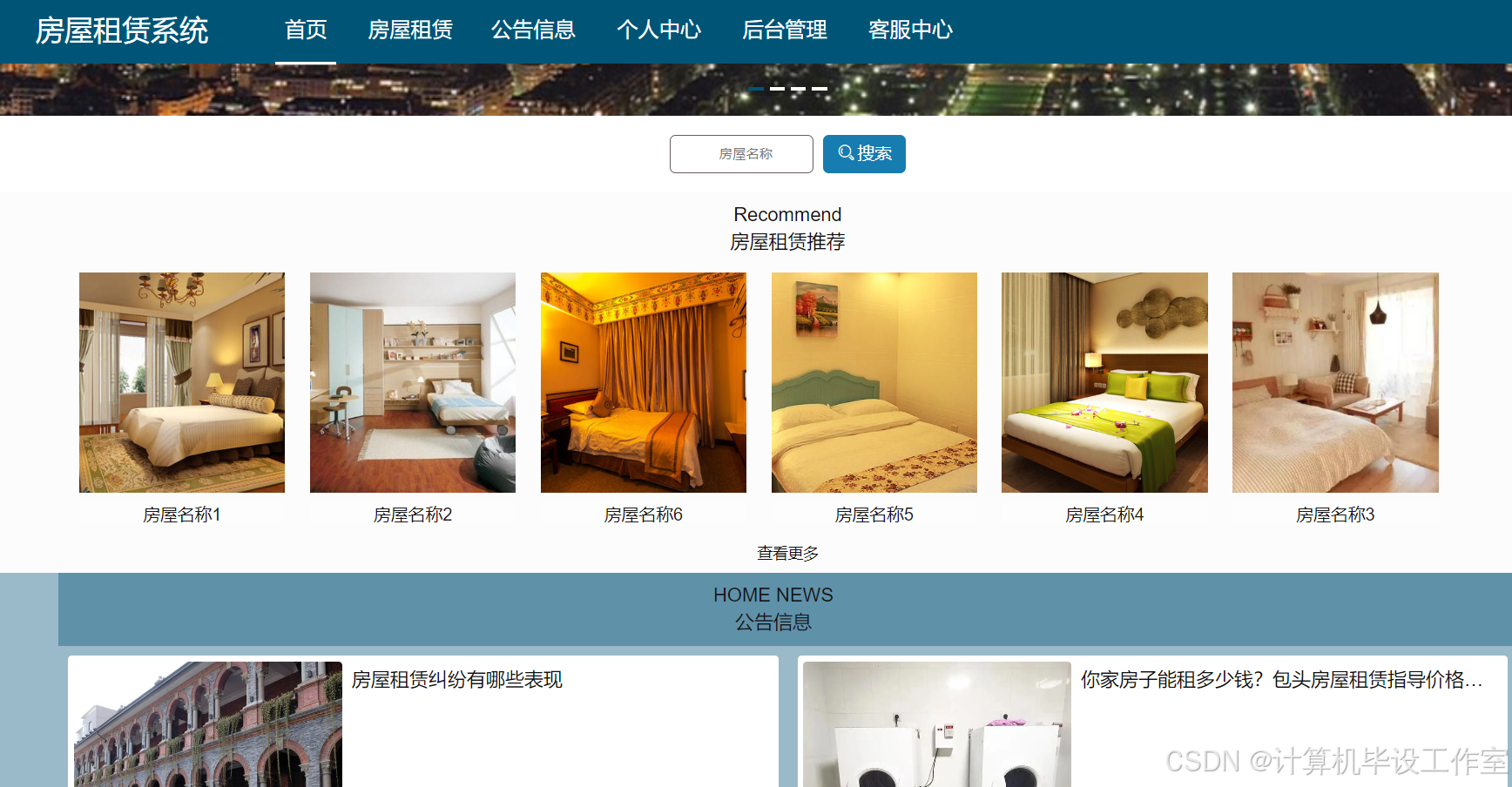 关键词:房屋租赁推荐管理系统;SSM框架;合同信息;退房评价