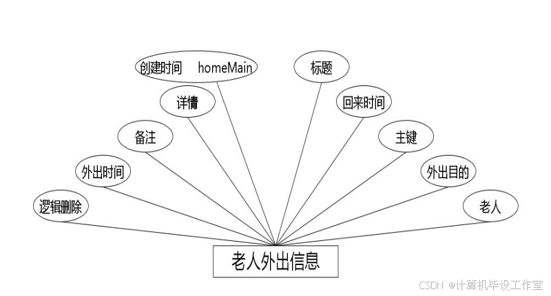 (7)下图是老人外出信息实体和其具备的属性。