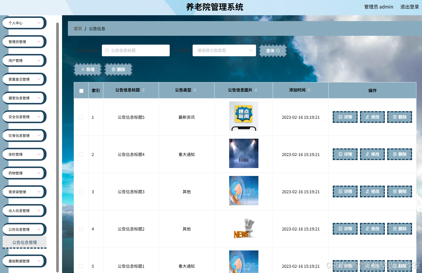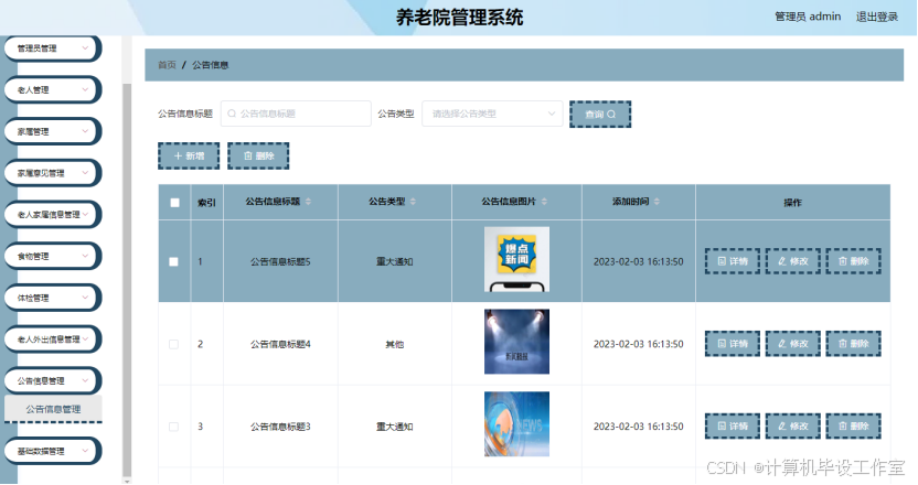 图5.4 公告信息管理页面