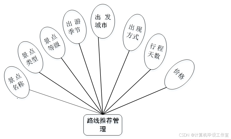 通过旅游管理系统的功能进行规划分成几个实体信息,实体信息将通过ER图进行说明,本系统的主要实体图如下: