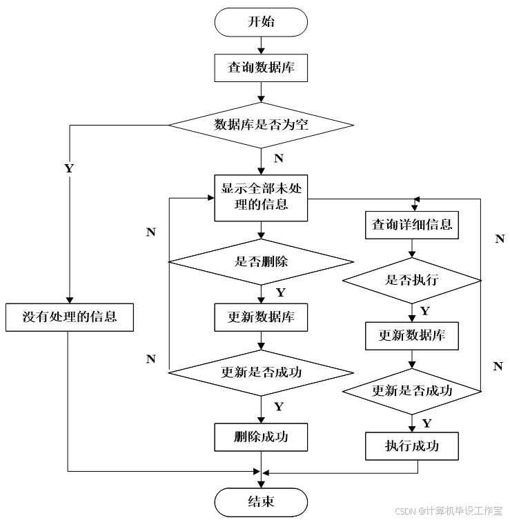 用户选择要删除的信息并单击Delete按钮。系统提示是否删除信息。如果用户想要删除信息,系统将删除信息。系统数据库删除信息。删除信息流程图如图3-5所示。