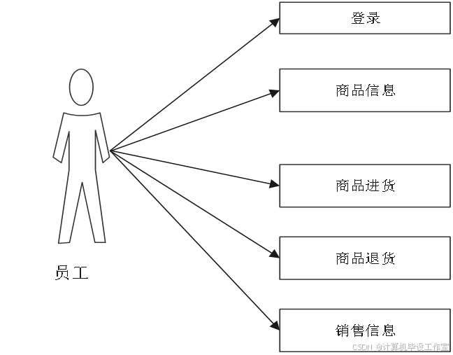 (1)员工可以实现:首页商品信息查询、销售信息以及商品的进出货信息录入等。