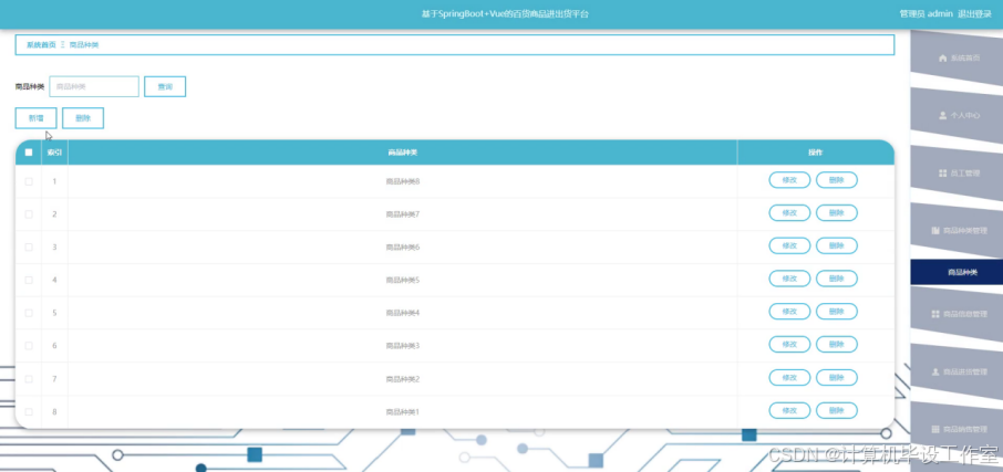 关键词:百货商品进出货管理 ;Springboot框架;Mysql数据库