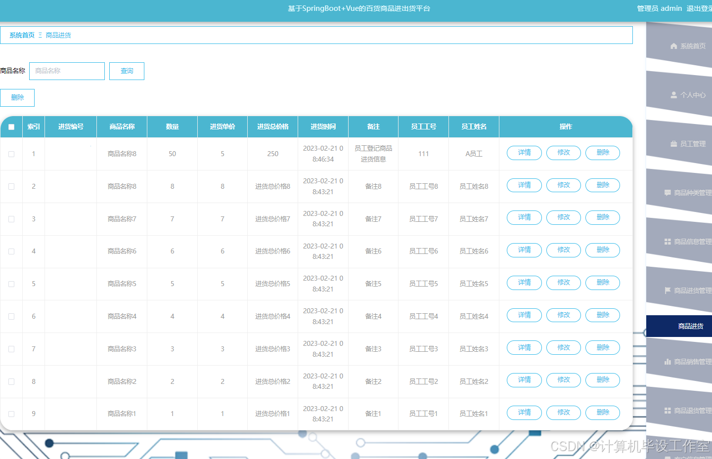 百货商品进出货平台超市管理系统(源码+数据库+论文齐全)java开发springboot框架vue javaweb javaee项目,可做计算机毕业设计或课程设