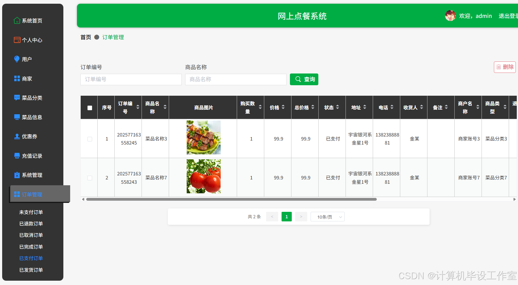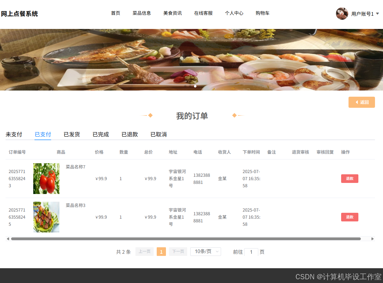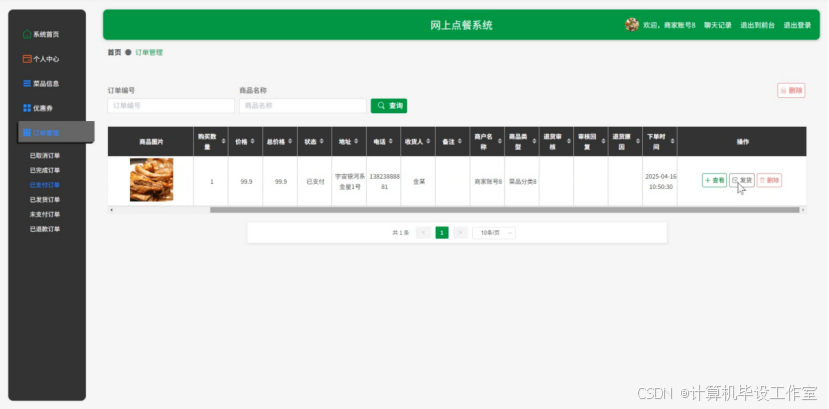 - 在线客服:在线客服功能允许用户与系统管理员进行实时沟通,咨询订单问题、菜品信息、活动详情等。