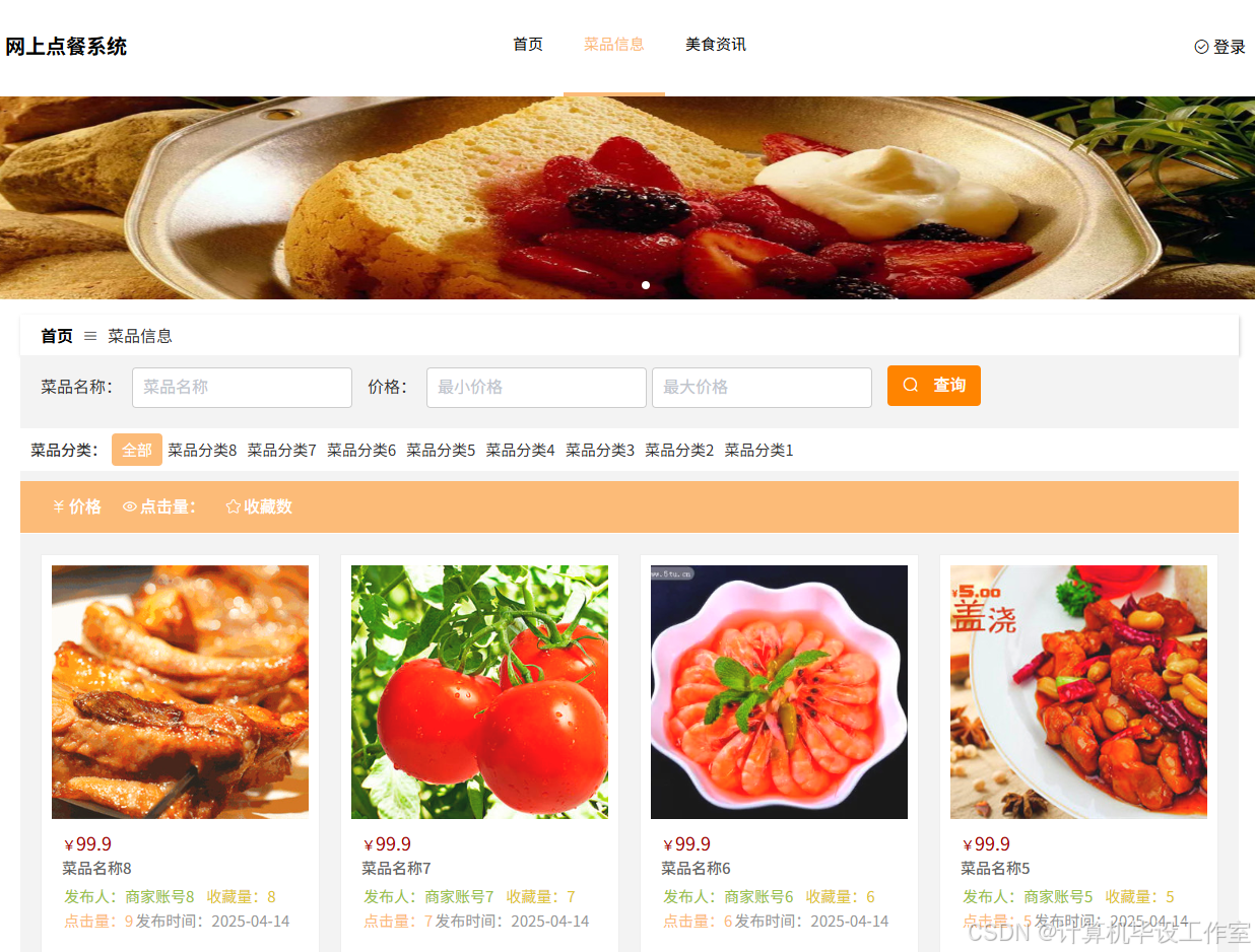 网上点餐系统(源码+数据库+论文+答辩ppt一整套齐全)java开发springboot+vue框架,可做计算机毕业设计或课程设计