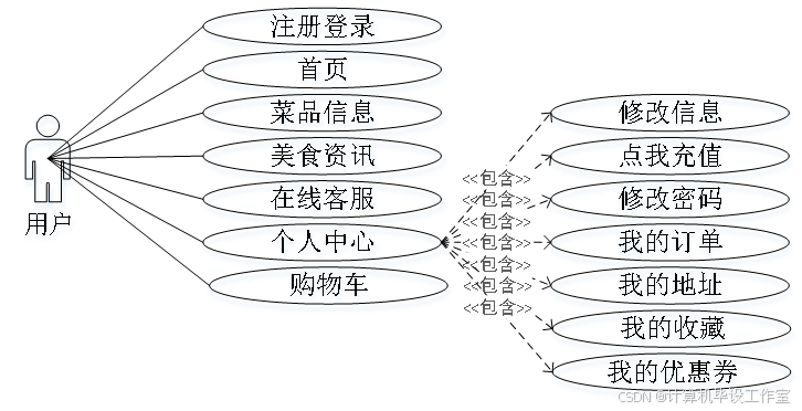(1)用户,注册成功后,可以浏览搜索菜品,可以收藏、购买菜品,提供优惠券、实时聊天、余额充值和订单管理等功能。