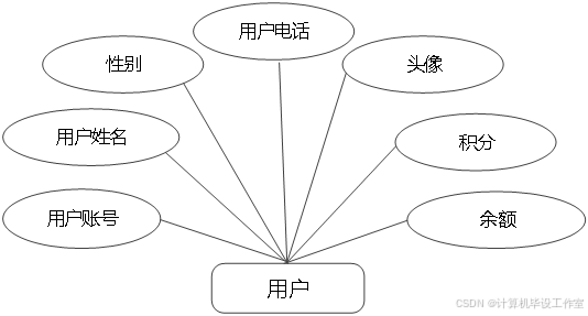 数据库概念结构设计主要涉及数据库的实体和实体之间的关系。通过实体-关系模型或者其他适当的模型,我将定义网站中涉及的各个实体以及它们之间的联系。下面我将罗列用户实体属性图和网站E-R图。