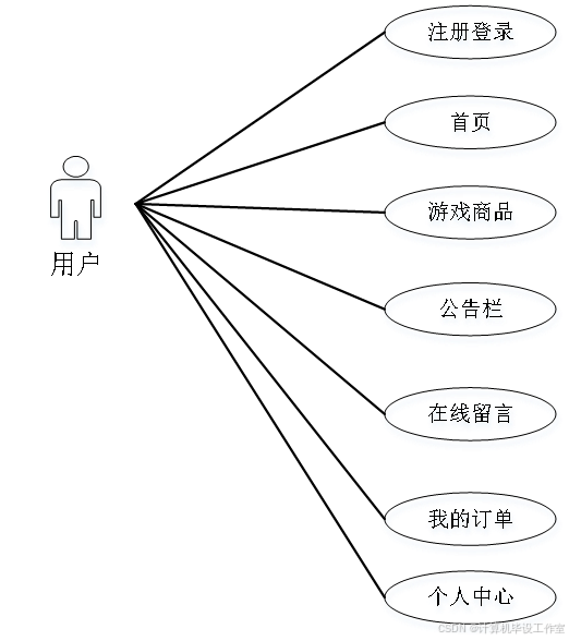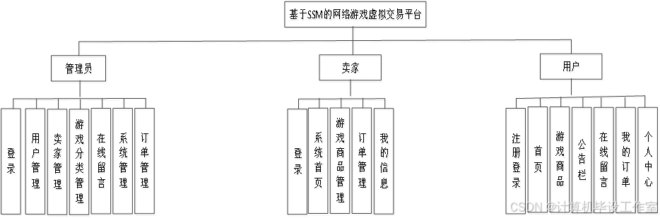 通过SSM开发的网络游戏虚拟交易平台,不仅支持客户的登录,还支持对游戏商品信息的查看以及在线交易,并且提交全面的数据和信息,从而满足用户的各种需求。此外,该软件还支持用户在游戏论坛种进行讨论交流,为客户带来更为便利的操作体验。根据系统功能需求建立的模块关系图如下图: