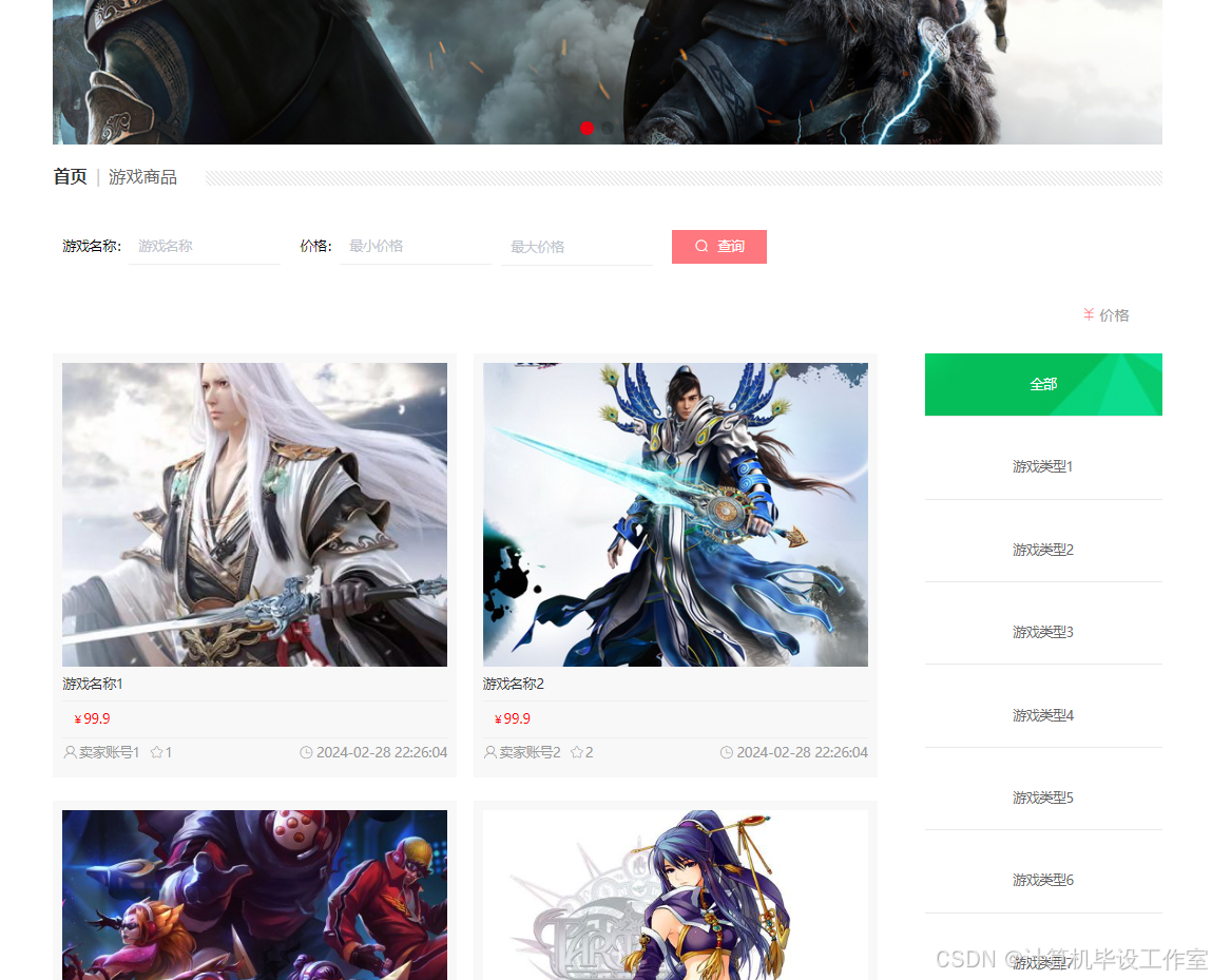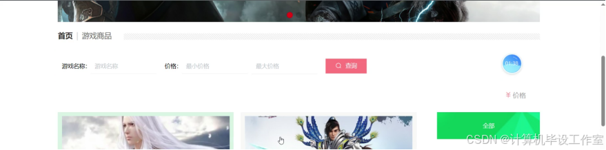 搜索功能是本项目中比较核心的功能,根据商品的名称进行模糊查询,用户根据自己的需求可以在前台页面中搜索自己喜欢的游戏商品信息