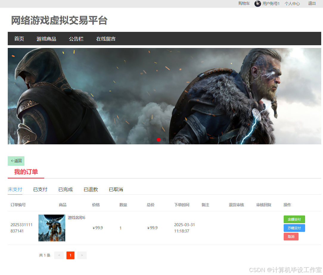 网络游戏虚拟交易平台(源码+数据库+论文+ppt)java开发ssm框架javaweb,可做计算机毕业设计或课程设计
