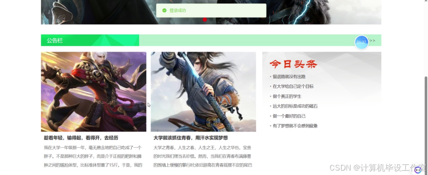 用户在访问本项目前台页面的时候,进行登陆或者注册,用户在完成登陆之后可以查看到用户的个人信息