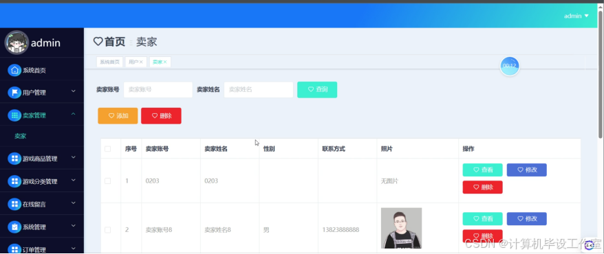 通过卖家管理页面,管理员可以对卖家用户信息进行维护管理操作,如图5-14所示。