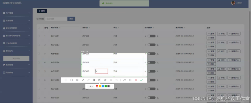 后台游戏商品管理模块主要包括商品列表管理,可以对游戏商品的分页查询、删除、修改、下架等操作