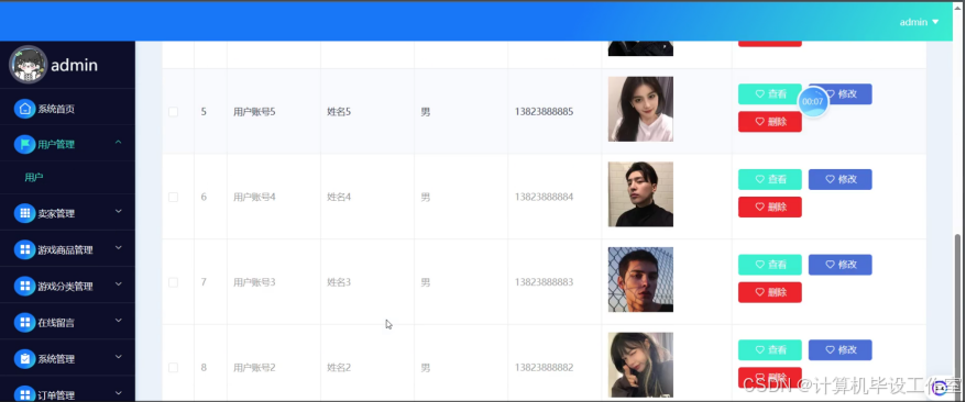 后台用户数据管理模块包括用户列表管理,包括用户数据的查看、修改和删除等功能,包括分页展示用户信息