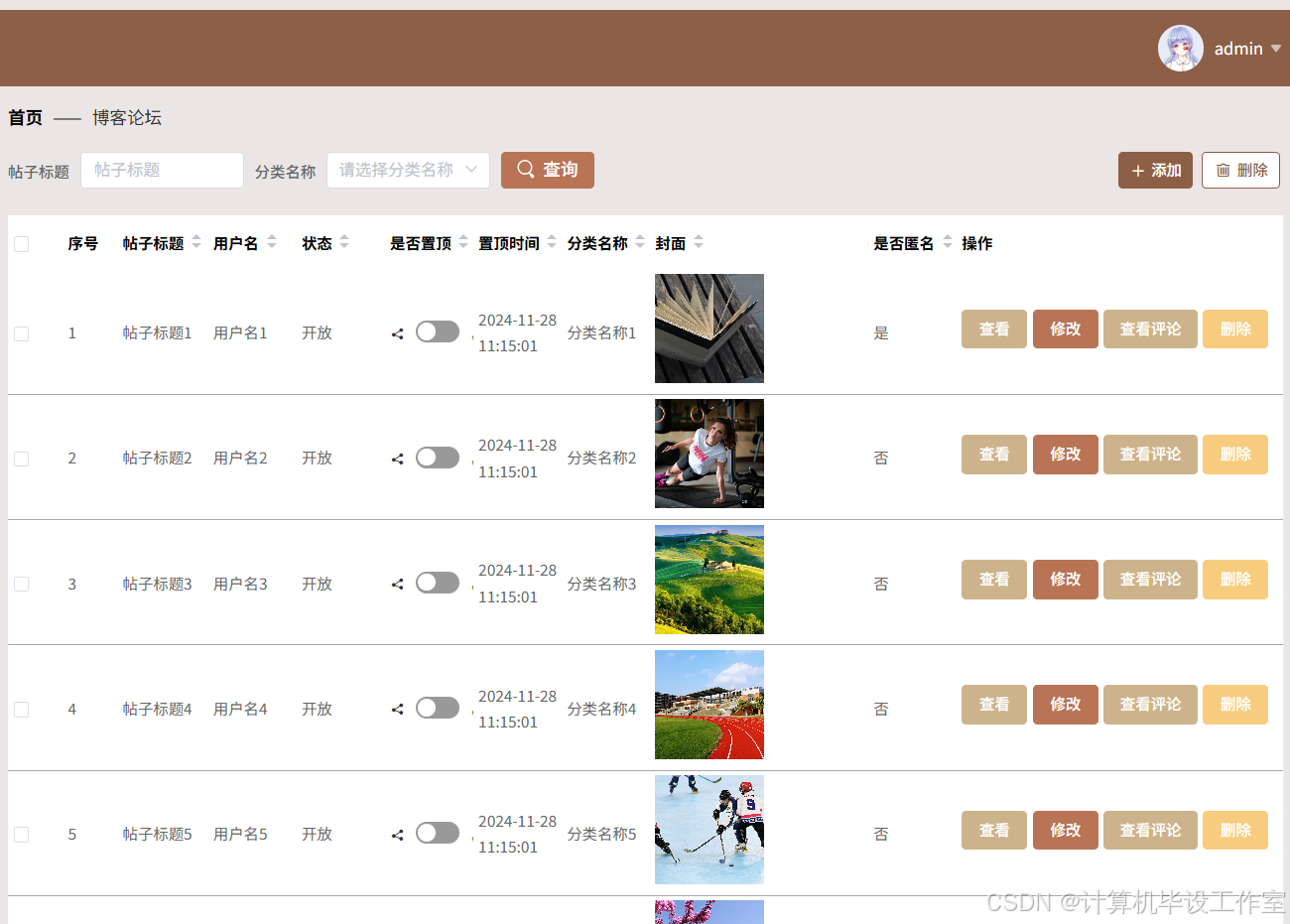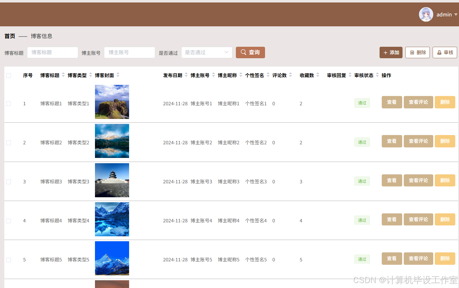 博客信息管理:该功能使管理员能够对博客文章进行全面管理,可以删除不适当的文章。