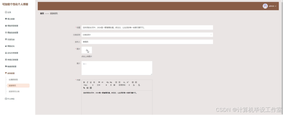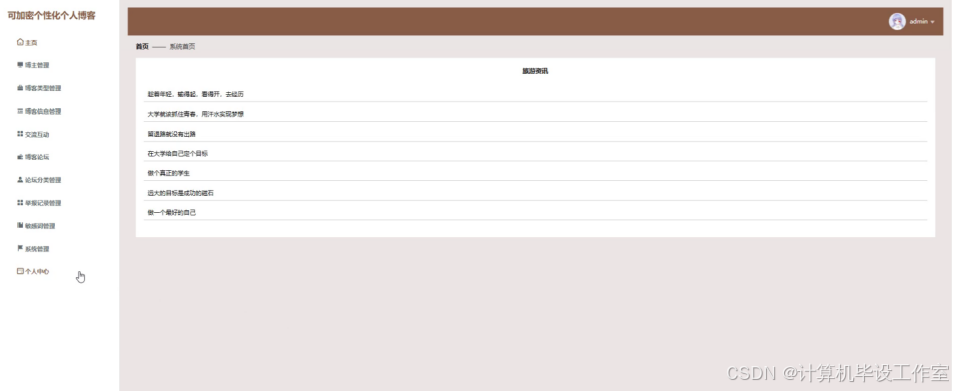 可加密个性化个人博客系统(源码+数据库+毕业论文+ppt一整套)java开发springboot+vue框架,可做计算机毕业设计或课程设计