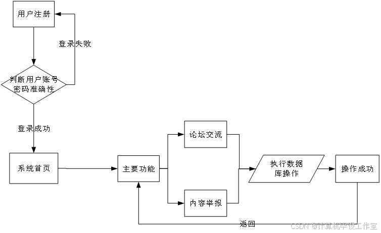 在基于Web的可加密个性化个人博客中,用户可以在博客论坛板块中进行交流互动,可对违规的内容进行举报操作,具体流程图如图3-5。