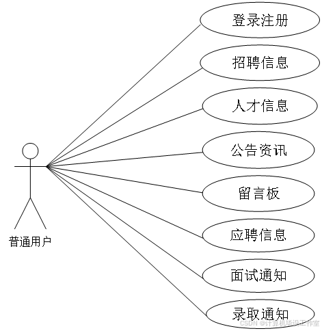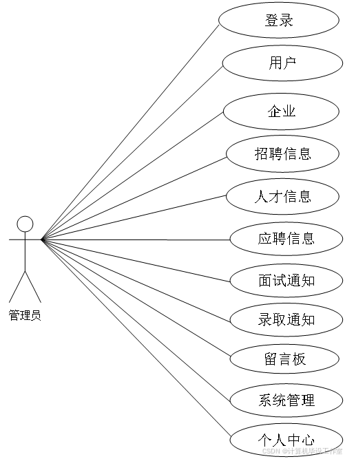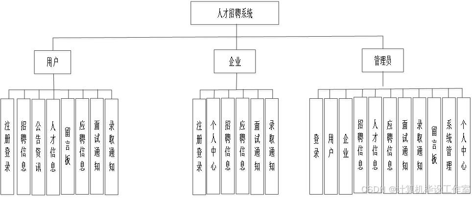 按照人才招聘系统的角色,我划分为了管理员以及普通用户和企业用户这三大部分。