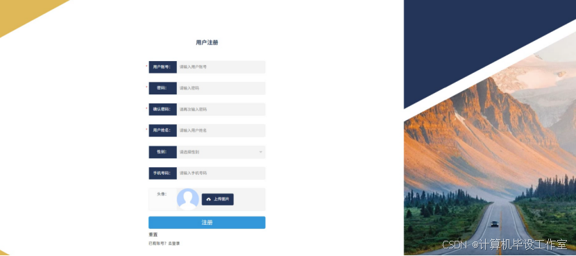 用户可以在系统前端点击注册按钮,输入账号、设置密码、确认密码、昵称、邮箱、选择身份然后进行注册,注册完成后方可凭个人账号和密码进行登录使用系统。