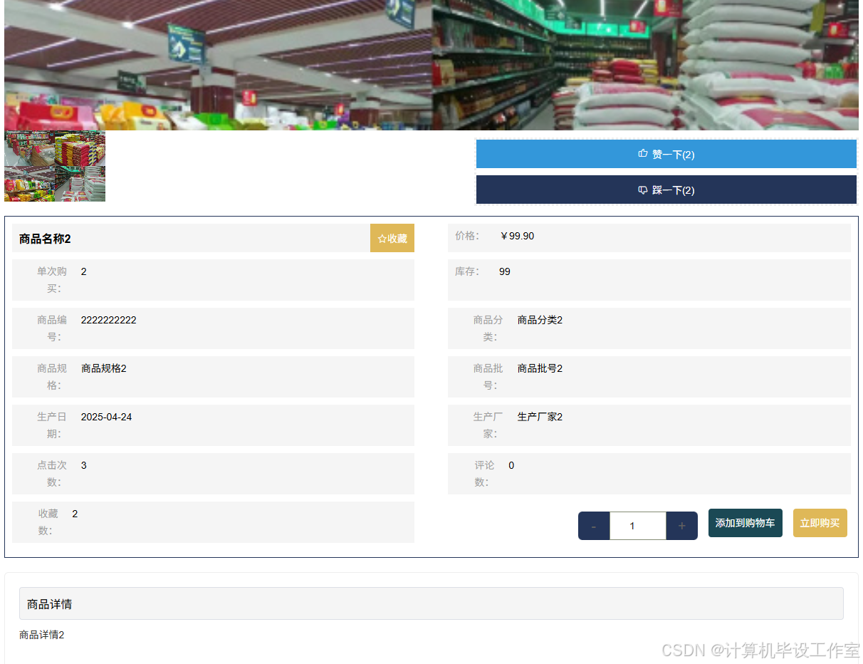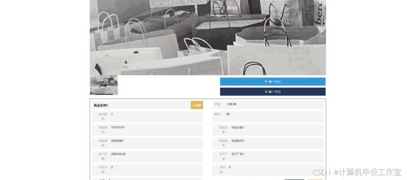 - 商品分类:管理员对商品信息进行分类管理,便于用户根据类型进行搜索查找对应商品。