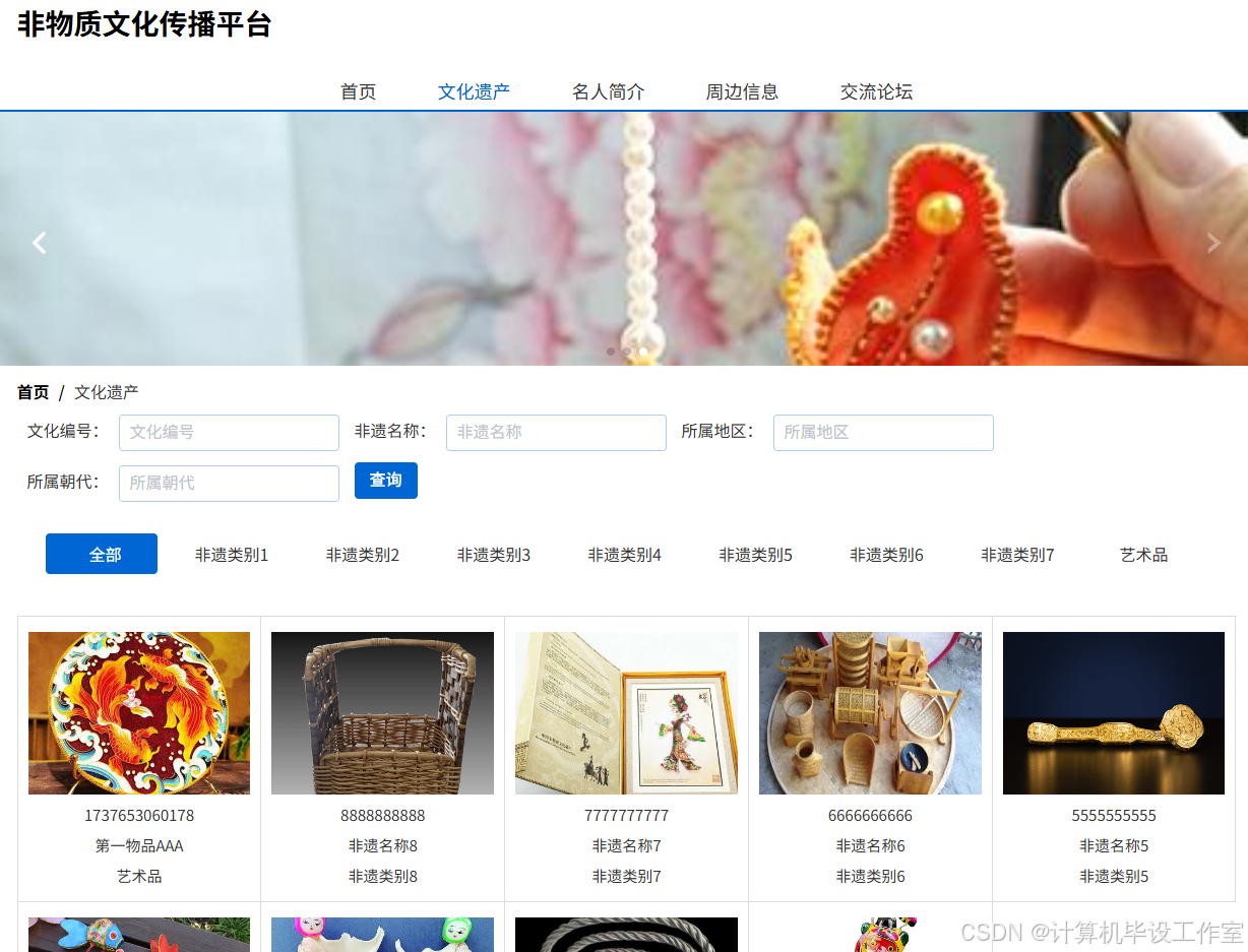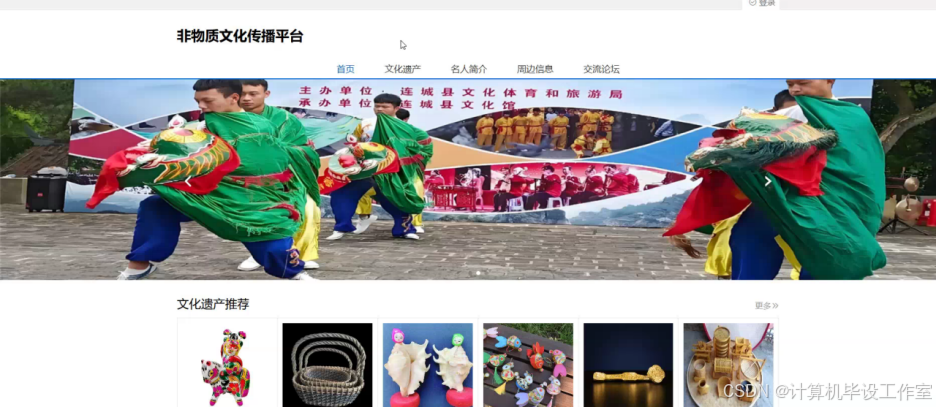 非遗非物质文化传播平台(源码+数据库+毕业论文+ppt一整套齐全)java开发springboot+vue框架javaweb,可做计算机毕业设计或课程设计