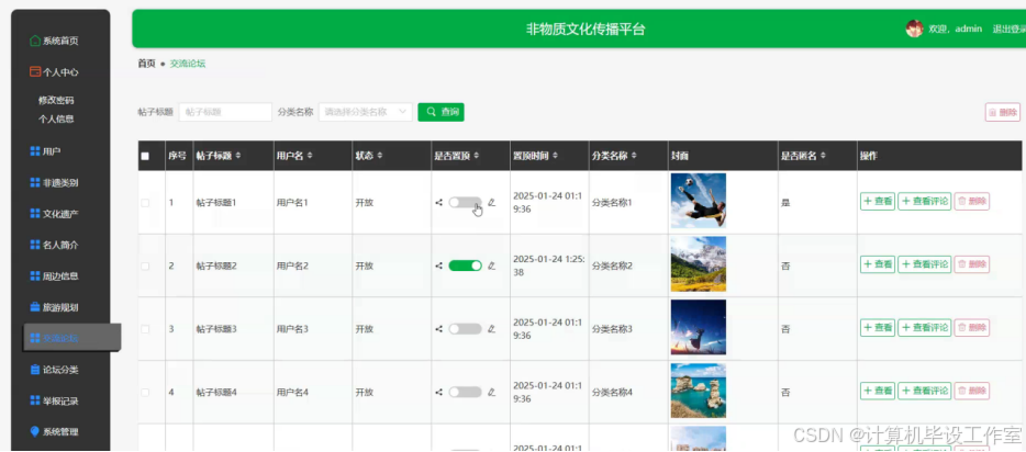 管理员可以对交流论坛中的帖子内容进行管理,可以对用户举报的违规内容进行处理操作,交流论坛界面如下图5-12所示。