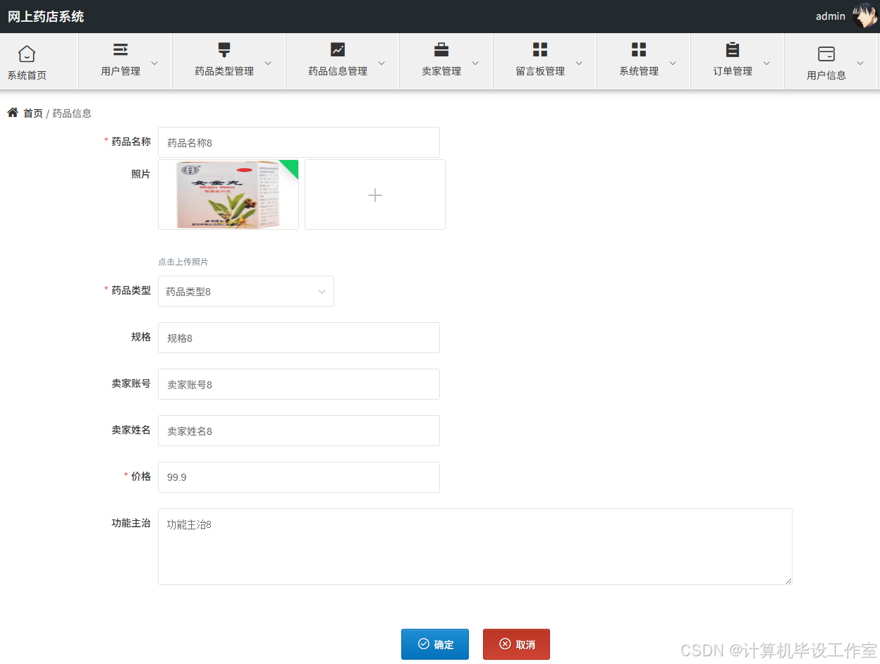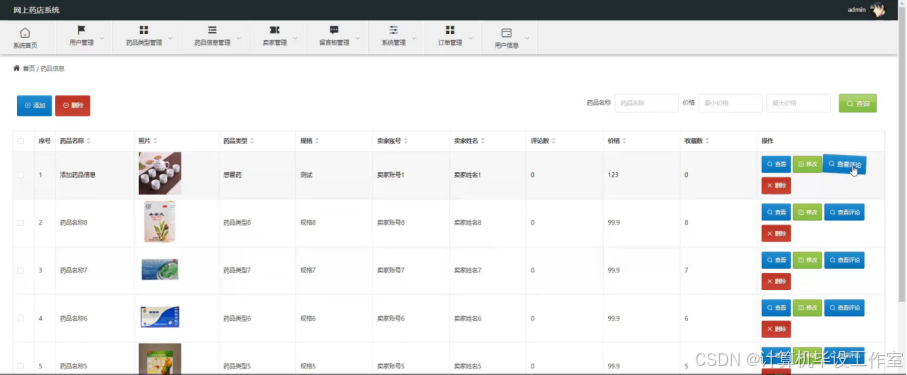(2)卖家进入系统可以进行药品类型管理、药品信息管理、订单管理、用户信息功能等。