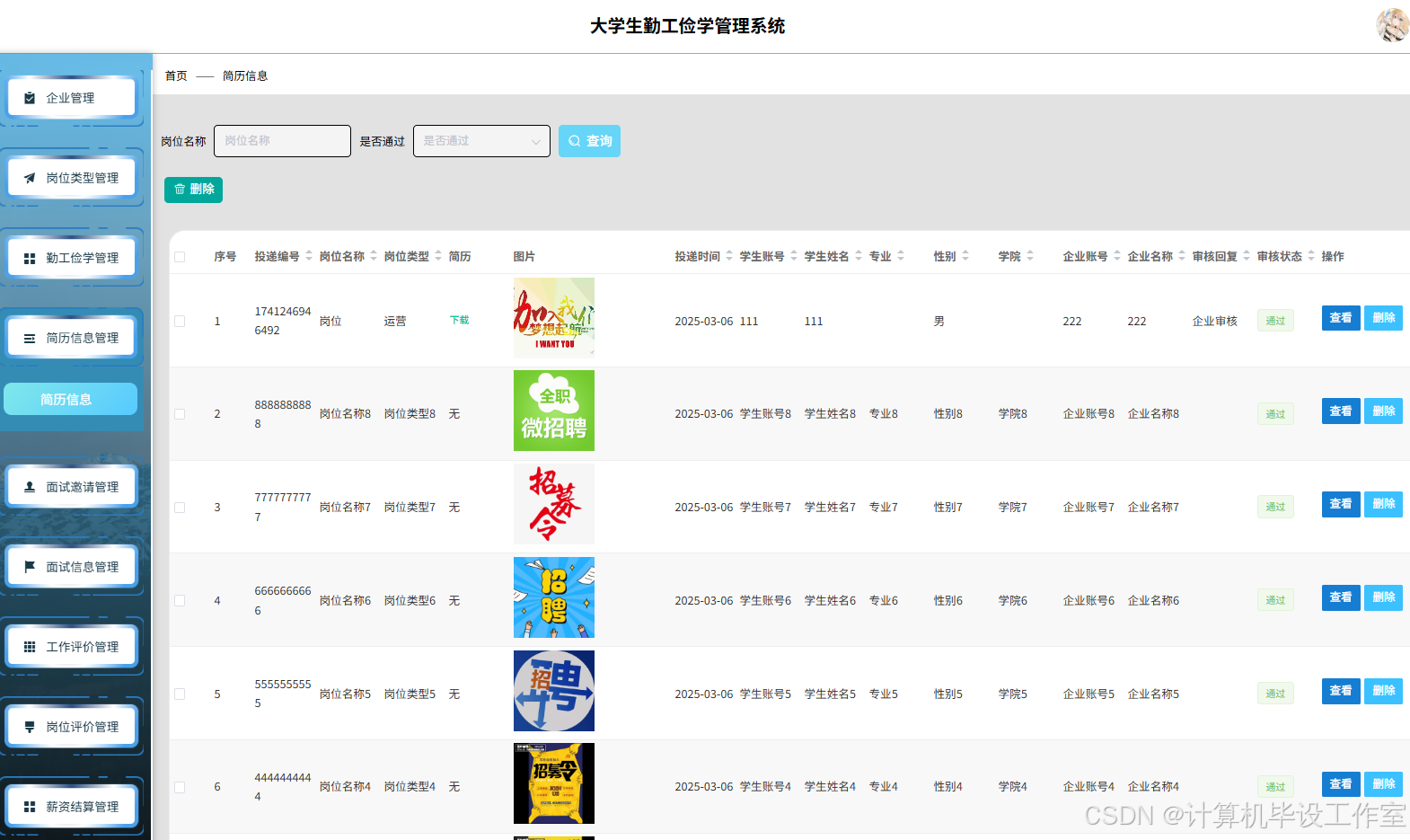 (5)学生信息管理模块:登记学生基本信息、岗位分配情况、申请记录等;