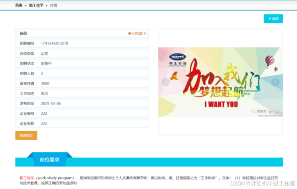 大学生勤工俭学管理系统(源码+数据库+毕业论文+答辩ppt)java开发springboot+vue框架javaweb,可做计算机毕业设计或课程设计