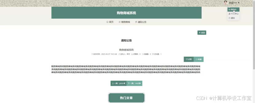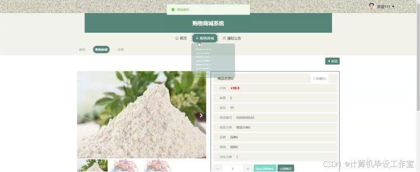 随着互联网技术的发展和电子商务的普及,消费者越来越倾向于通过网络购买商品,这不仅节省了时间,还提供了更广泛的选择。开发购物商城系统的目的在于整合线上资源,优化购物流程,使得用户能够在一个平台上享受到从产品浏览到下单购买再到订单追踪的一站式服务,同时为企业提供一个展示和销售产品的综合性平台。在设计过程中,采用了前后端分离开发模式,利用Vue实现了动态用户界面,提升了用户体验;后端基于Spring Boot框架搭建了安全稳定的服务端,采用MySQL数据库进行所有商品信息以及订单信息的存储。系统功能核心功能包括注册登录、通知公告、购物商城、修改密码、我的订单、我的地址等。购物商城系统不仅提升了用户的购物体验,同时也为企业带来了更高效的运营管理工具。