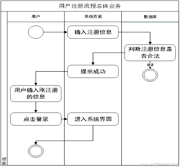 在整体用户注册业务中,当用户进行注册时,管理员会根据用户的情况来执行注册操作。整个用户注册流程的活动图设计如图4-6所示。
