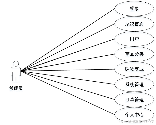 UML(统一建模语言)用例图是需求分析阶段常用的工具,通过直观的图形方式表示系统的功能需求和参与者。每个用例图包含一系列用例,即系统能够执行的特定功能,以及与之交互的参与者。本文将对系统按照角色模块进行需求分析。