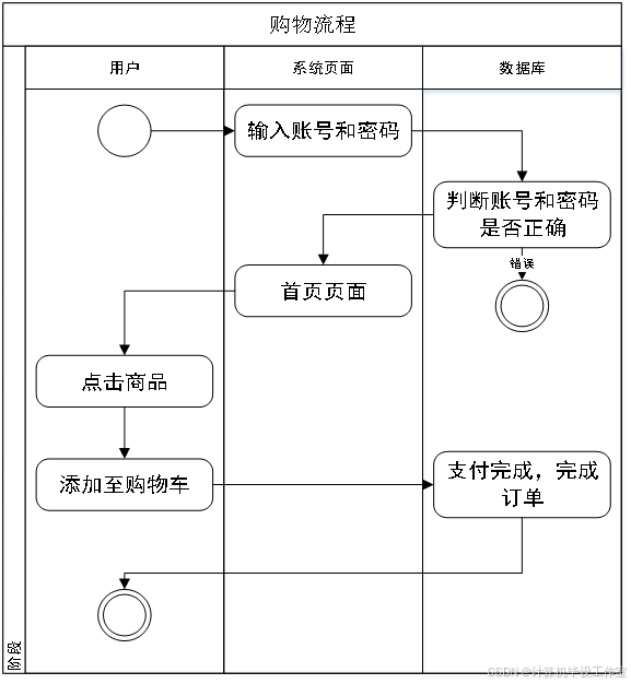 在购物流程中,用户购买商品,其购物流程活动图设计如图4-5所示。