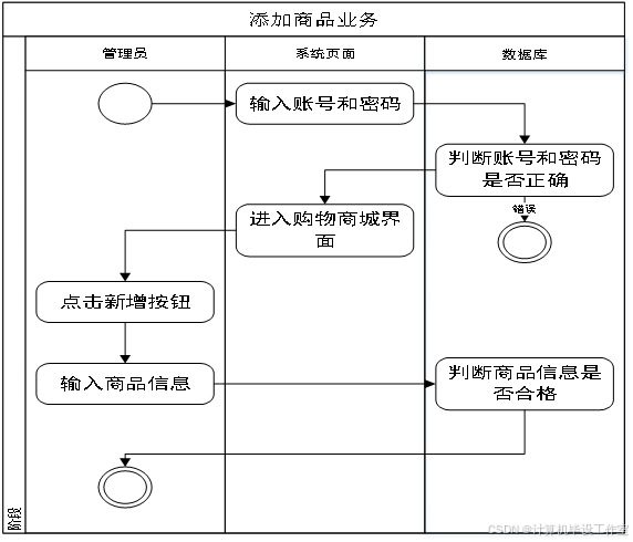 在管理员添加商品的过程中,首先登录到网站后台管理界面。然后点击购物商城模块,并选择添加商品选项。在这个选项中,管理员可以输入商品的详细信息,并将其提交到数据库中进行保存。整个添加商品信息的活动图如图4-4所示。