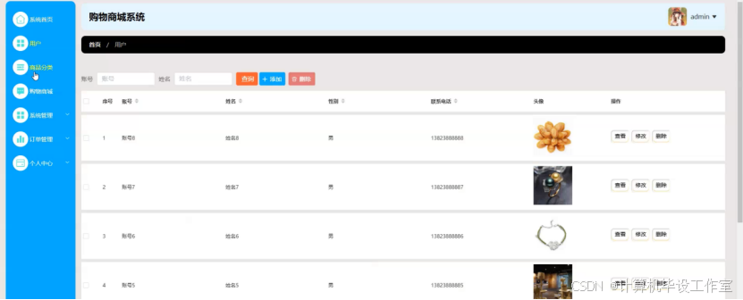管理员点击用户界面中可以对注册的用户信息进行查看和管理操作。