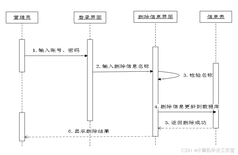 数据输出:弹出信息删除成功消息框。序列图如图4-8所示