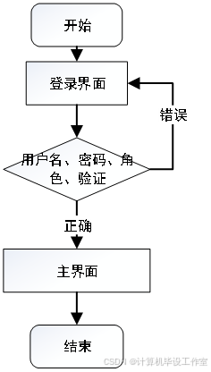 用户登录时需输入用户名和密码,系统验证后若通过则显示“登录成功”,并结束登录流程。验证失败,则显示“登录失败”并引导用户重新输入。登录流程如图4-3所示。