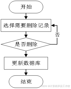 用户在流程开始时选择要删除的数据项,系统随后弹出确认删除窗口。用户确认删除,系统将移除数据并更新数据库,流程结束。用户取消,流程返回数据列表界面。删除信息的流程如图4-5所示。