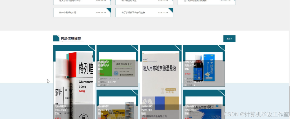 用户可以在药品信息界面中搜索浏览所有的药品列表,进行点击查看以及添加购物车。药品信息功能效果图如图5-8所示。