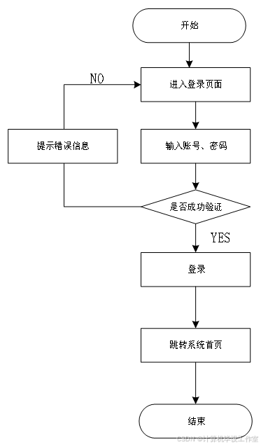 用户访问电影院管理系统,点击登录按钮进入登录页面。在登录页面,用户输入注册的账号和密码,系统验证账号和密码的正确性,若验证通过,则跳转至用户个人中心或首页;若验证失败,则提示错误信息,要求用户重新输入。系统的用户登录流程图如图4所示。