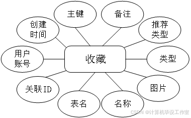 收藏包括主键、创建时间、用户id、关联id、表名、、名称、图片、类型、推荐类型、备注等属性,如图11所示。